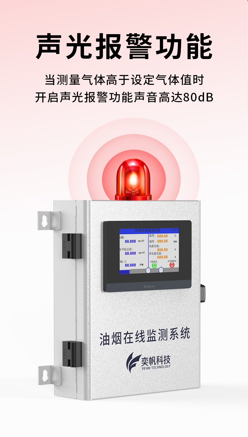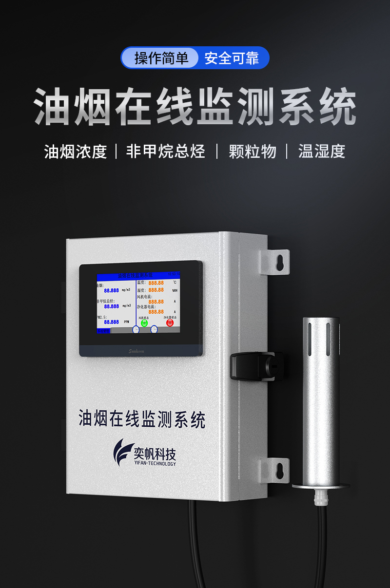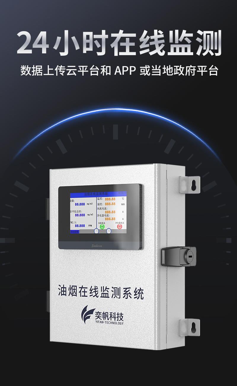 YF-3600-Mini奕帆科技油煙在線監(jiān)測系統(tǒng),是我司為解決現(xiàn)場油煙排放實時監(jiān)測而研發(fā)的,是一套高性能的集油煙監(jiān)測、數(shù)據(jù)采集傳輸為一體的監(jiān)測系統(tǒng)。該系統(tǒng)可對餐飲企業(yè)油煙排放濃度、凈化器運行狀態(tài)、風(fēng)機運行狀態(tài)等指標(biāo)進行在線監(jiān)控,為用戶提供直接有效且真實的油煙排放狀況。這套系統(tǒng)能精確的掌握污染源頭的具體情況,并通過采集的數(shù)據(jù)給相關(guān)部門提供確定治理方案??稍赼pp和云平臺查看實時數(shù)據(jù)、、歷史數(shù)據(jù)、導(dǎo)出數(shù)據(jù)等同時具備24小時連續(xù)監(jiān)測、超標(biāo)報警、數(shù)據(jù)存儲功能產(chǎn)品已獲得CCEP認(rèn)證、CMA檢測報告。