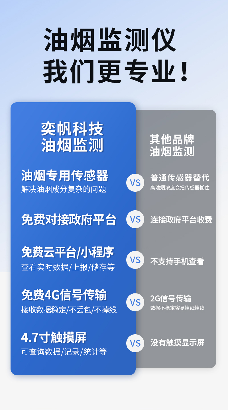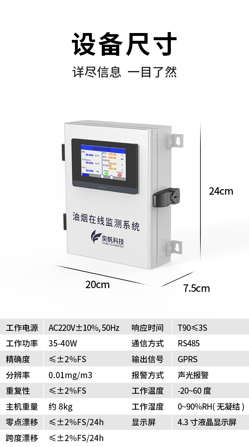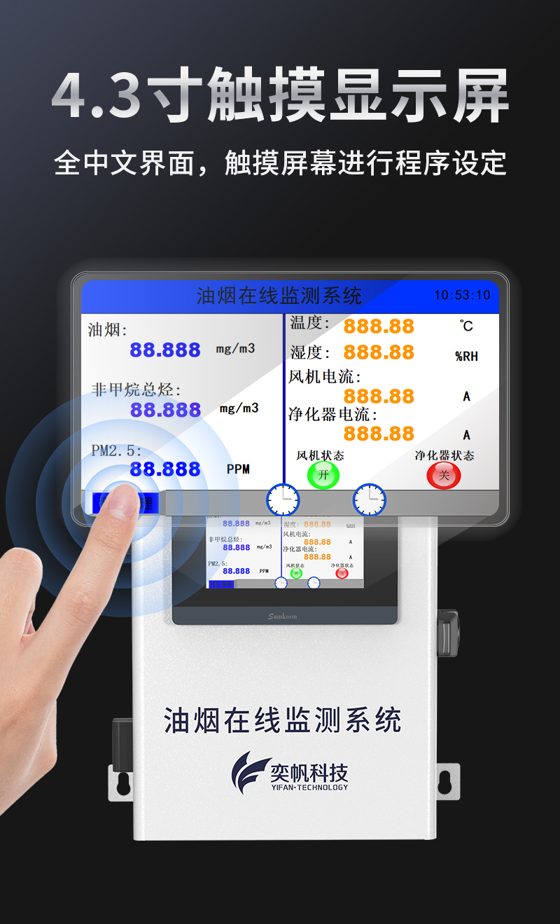 YF-3600-Mini奕帆科技油煙在線監(jiān)測系統(tǒng),是我司為解決現(xiàn)場油煙排放實時監(jiān)測而研發(fā)的,是一套高性能的集油煙監(jiān)測、數(shù)據(jù)采集傳輸為一體的監(jiān)測系統(tǒng)。該系統(tǒng)可對餐飲企業(yè)油煙排放濃度、凈化器運行狀態(tài)、風(fēng)機運行狀態(tài)等指標(biāo)進行在線監(jiān)控,為用戶提供直接有效且真實的油煙排放狀況。這套系統(tǒng)能精確的掌握污染源頭的具體情況,并通過采集的數(shù)據(jù)給相關(guān)部門提供確定治理方案??稍赼pp和云平臺查看實時數(shù)據(jù)、、歷史數(shù)據(jù)、導(dǎo)出數(shù)據(jù)等同時具備24小時連續(xù)監(jiān)測、超標(biāo)報警、數(shù)據(jù)存儲功能產(chǎn)品已獲得CCEP認(rèn)證、CMA檢測報告。
