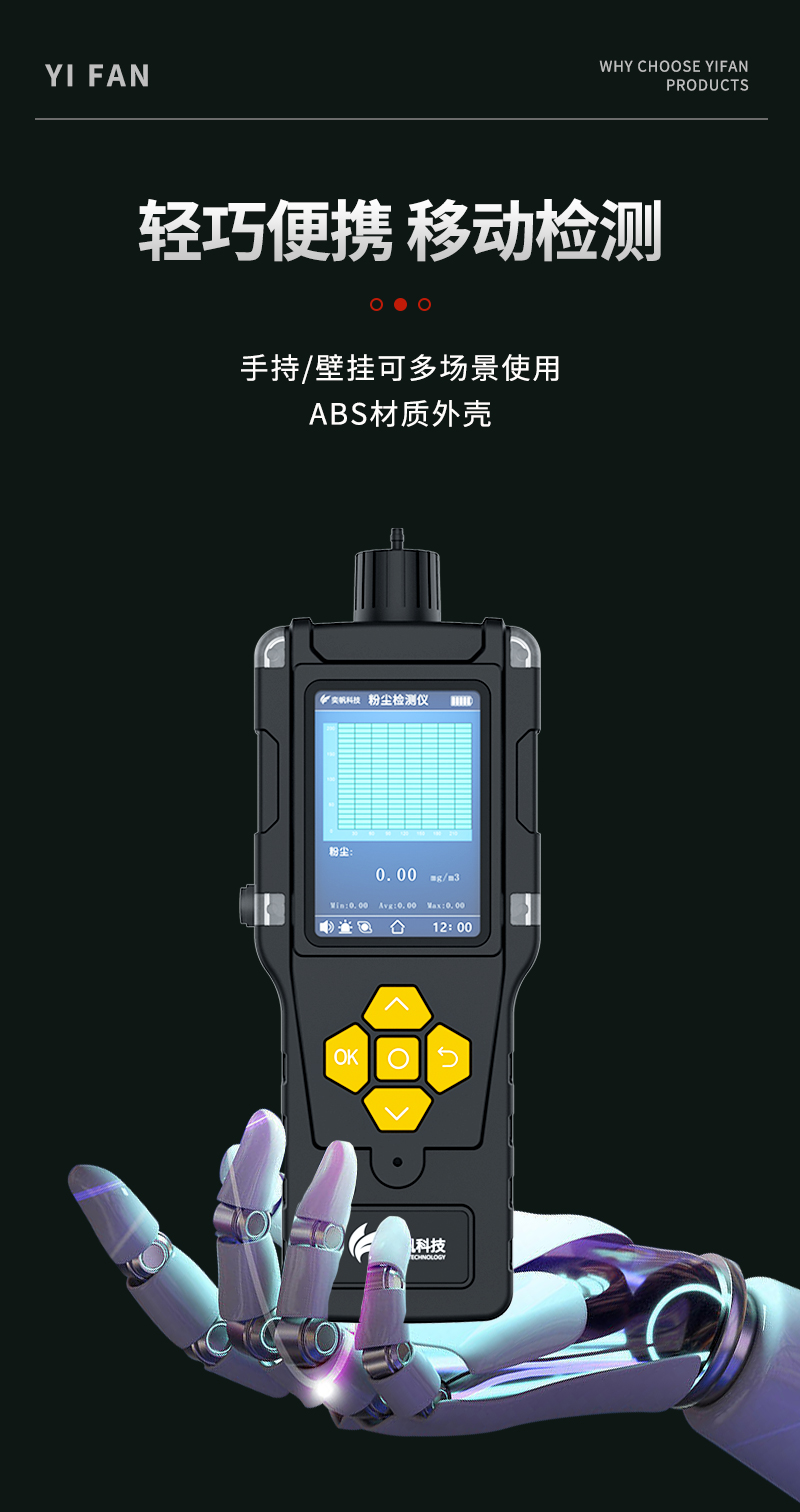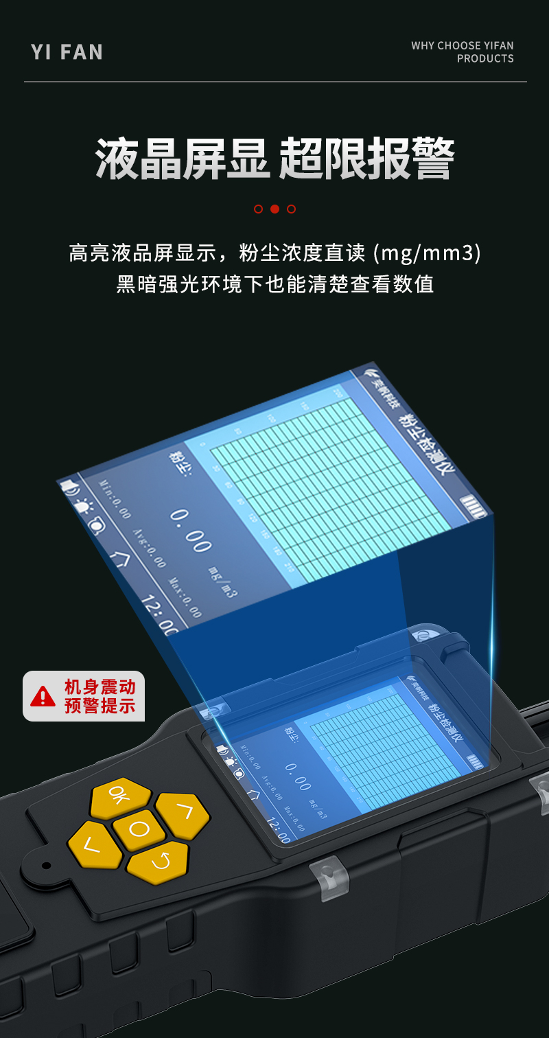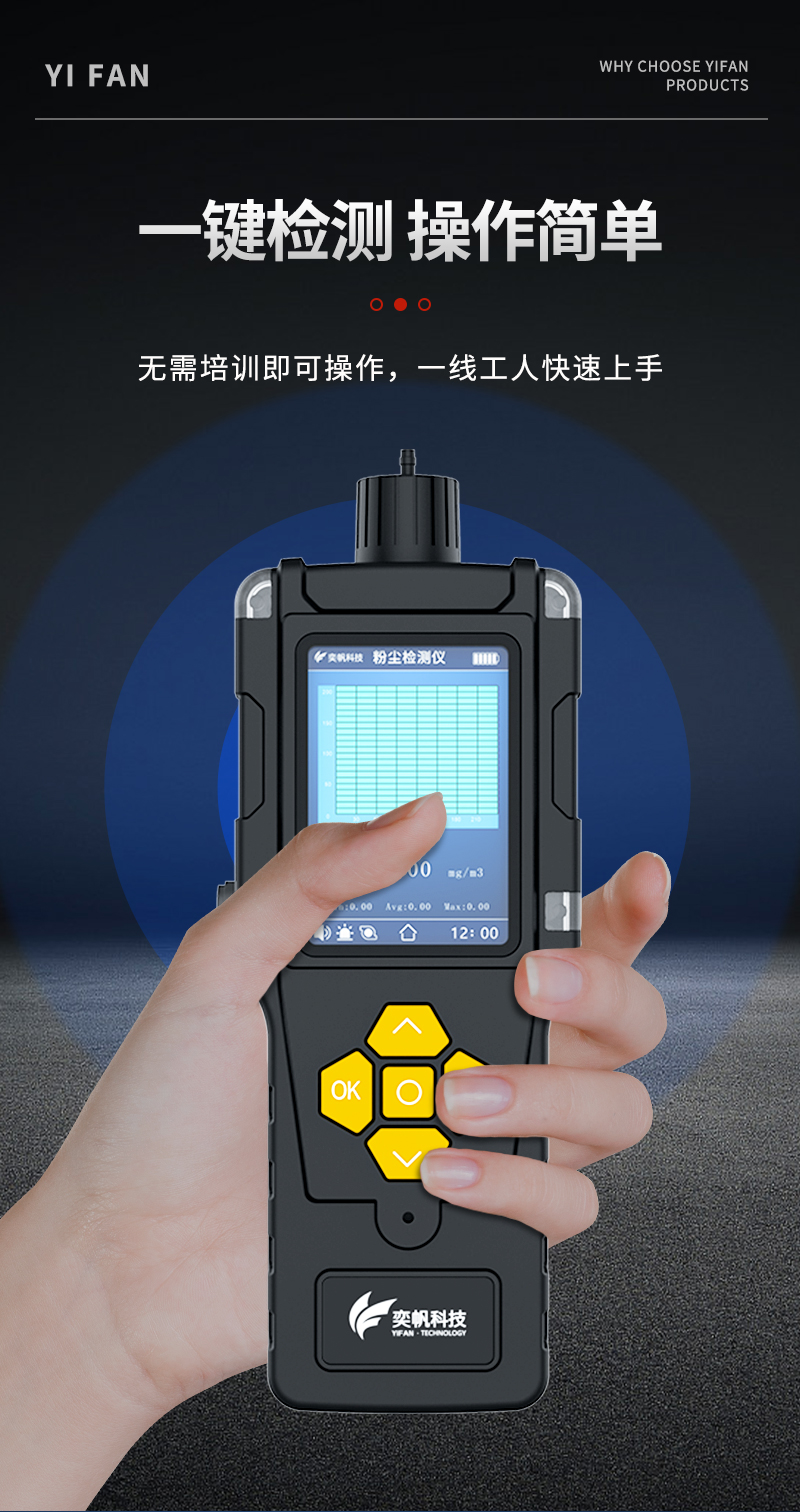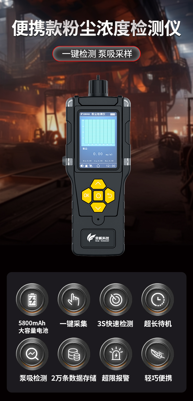 YF-2000-PM奕帆科技泵吸粉塵檢測儀,是一款數(shù)字化多功能粉塵檢測儀,用于工廠車間中粉塵顆粒物(TSP)濃度檢測及超標(biāo)報(bào)警。它具有實(shí)時(shí)數(shù)據(jù)監(jiān)測和氣體溫濕度監(jiān)測,一段時(shí)間內(nèi)的最大值、最小值、平均值數(shù)據(jù),能存儲(chǔ)一百萬條歷史數(shù)據(jù),可以連接藍(lán)牙打印機(jī),支持屏幕截圖,連接電腦導(dǎo)出圖片,提示下次校準(zhǔn)倒計(jì)時(shí)功能等功能。