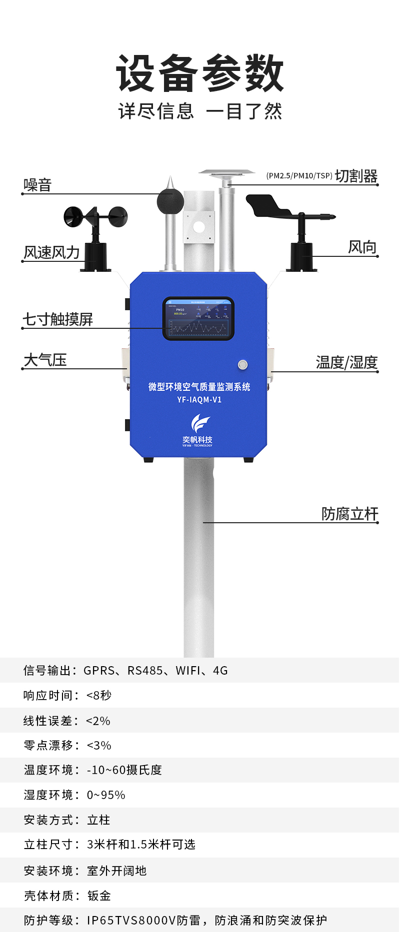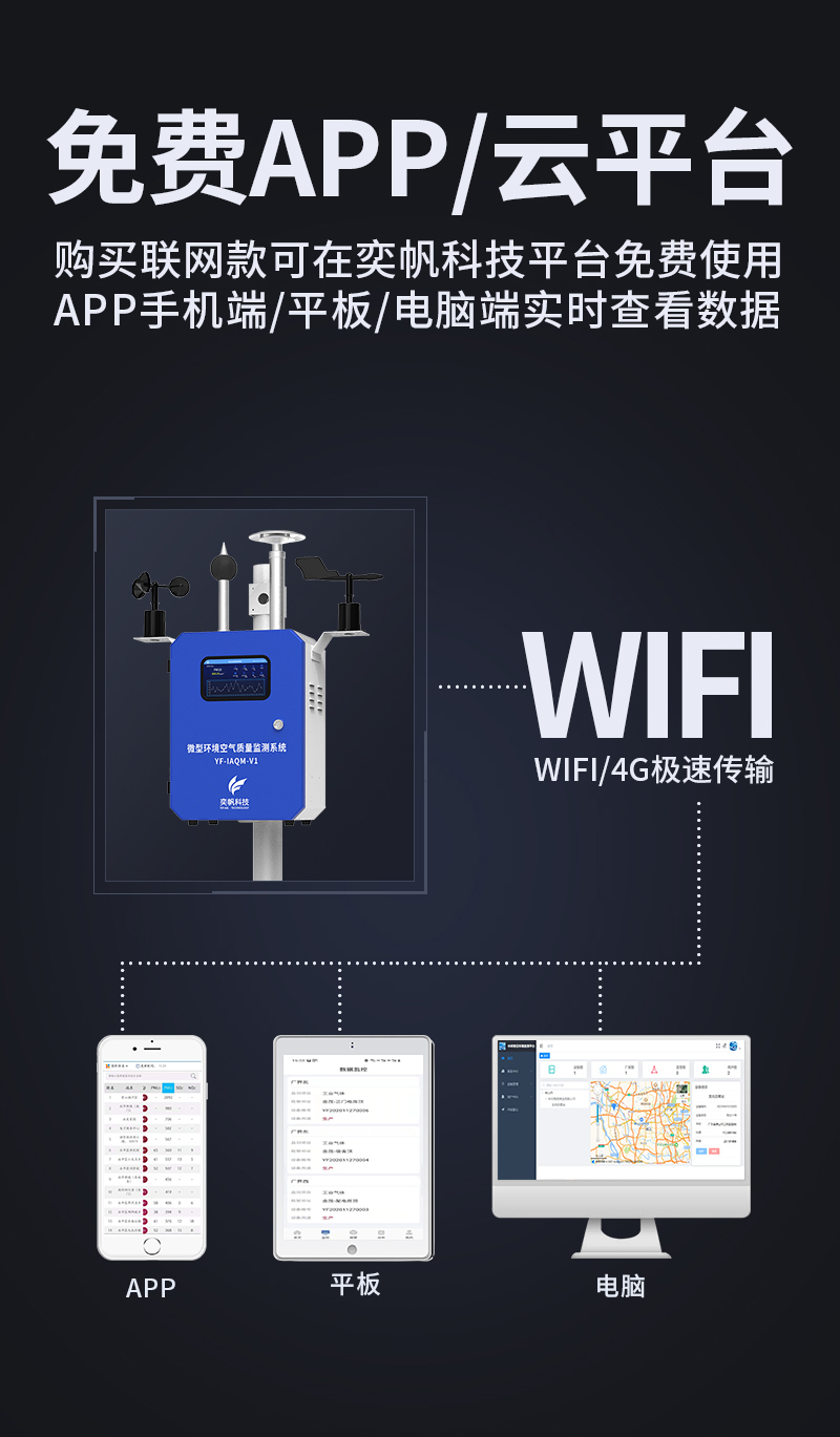 YF-IAQM-V1奕帆科技微型環(huán)境空氣質(zhì)量監(jiān)測(cè)系統(tǒng)是集數(shù)據(jù)采集、存儲(chǔ)、傳輸和管理于一體的無(wú)人值守的環(huán)境監(jiān)測(cè)系統(tǒng),能全天候連續(xù)自動(dòng)監(jiān)測(cè)環(huán)境,在提供PM10、PM2.5、SO2、NO2、CO、03、VOC等7項(xiàng)參數(shù)數(shù)據(jù)的基礎(chǔ)上,可擴(kuò)展對(duì)氣象參數(shù)進(jìn)行監(jiān)測(cè)。同時(shí)結(jié)合物聯(lián)網(wǎng)、智能采集系統(tǒng)、地理信息系統(tǒng)、動(dòng)態(tài)圖表系統(tǒng)等先進(jìn)技術(shù),為環(huán)保部門的環(huán)境決策、環(huán)境管理、污染防治提供詳實(shí)的數(shù)據(jù)資料和科學(xué)依據(jù)??稍赼pp和云平臺(tái)查看實(shí)時(shí)數(shù)據(jù)、歷史數(shù)據(jù)、導(dǎo)出數(shù)據(jù)等,同時(shí)具備24小時(shí)連續(xù)監(jiān)測(cè)、超標(biāo)報(bào)警、數(shù)據(jù)存儲(chǔ)功能。