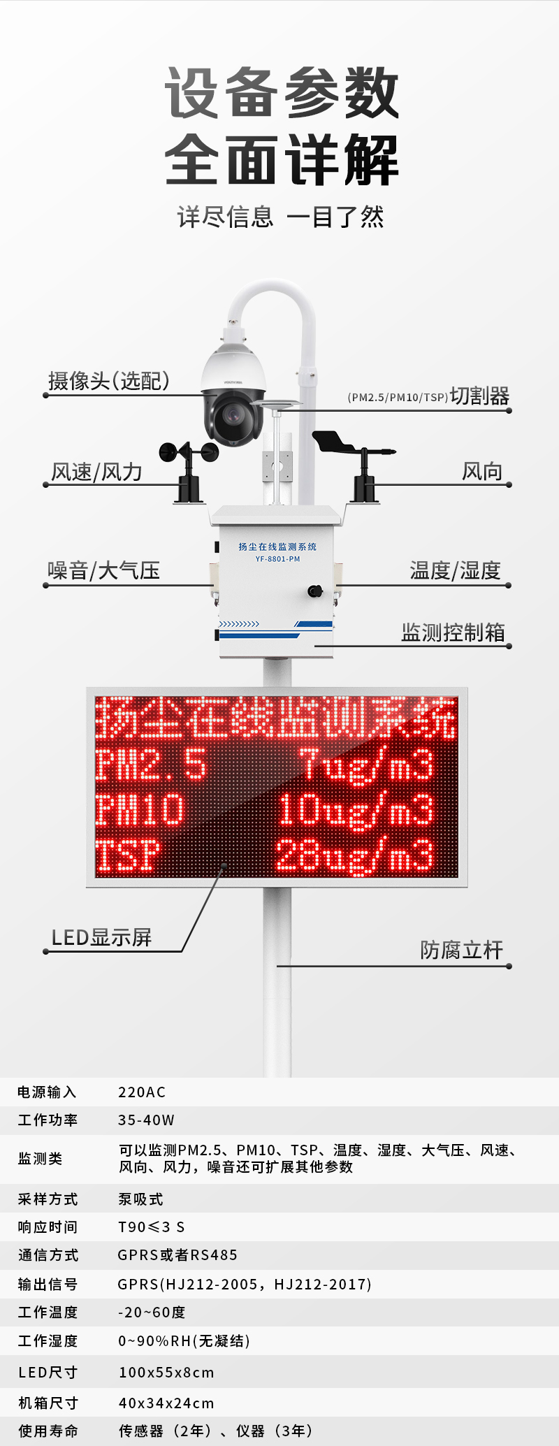 YF-8500-TSPTSP質(zhì)量監(jiān)測系統(tǒng)由各類環(huán)境傳感器、數(shù)據(jù)采集主控、無線通訊設(shè)備、供電設(shè)備、軟件平臺(tái)組成??捎糜跍y量 PM2.5、PM10、TSP 等各類環(huán)境空氣數(shù)據(jù)。系統(tǒng)采用模塊化設(shè)計(jì),可根據(jù)不同地域環(huán)境狀況,對(duì)環(huán)境各要素靈活增加或減少相應(yīng)的模塊和傳感器,任意組合,方便快捷的滿足各種用戶需求。數(shù)據(jù)通過無線/GPRS上傳至云管理平臺(tái),運(yùn)用大數(shù)據(jù)智能動(dòng)態(tài)分析、及時(shí)報(bào)警、精準(zhǔn)鎖源,強(qiáng)化監(jiān)管體系。