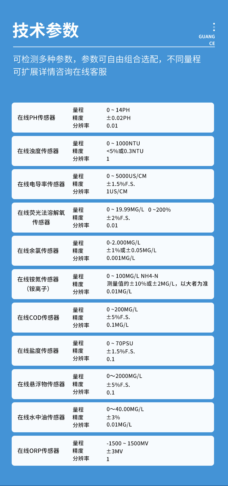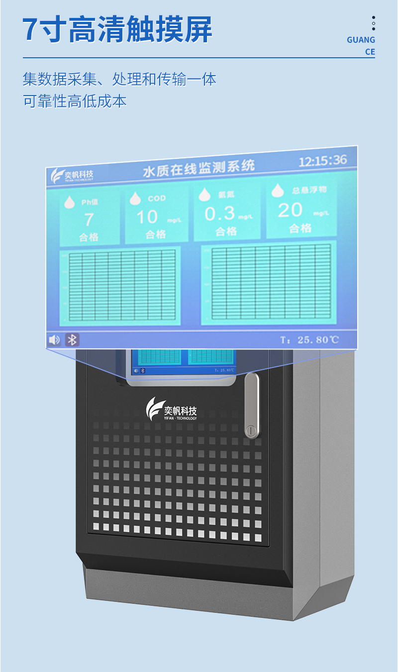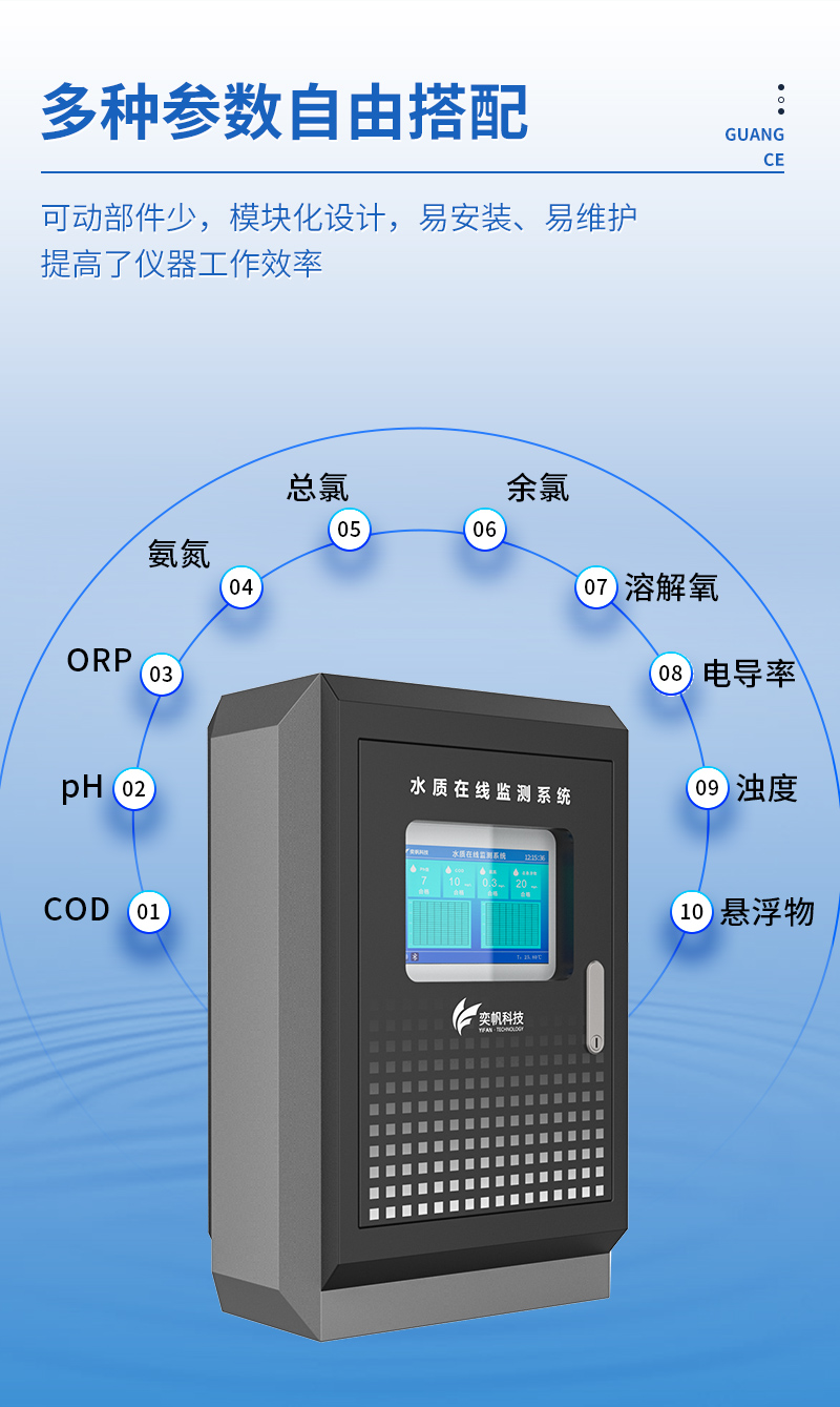 YF-8801-WT奕帆科技系列水質(zhì)在線監(jiān)測(cè)系統(tǒng)是一種先進(jìn)的自動(dòng)化監(jiān)測(cè)設(shè)備,能夠?qū)崟r(shí)、連續(xù)地監(jiān)測(cè)水體中的多種參數(shù),如電導(dǎo)率、pH值、流量、懸浮物、溫度、溶解氧、濁度、離子類、余氯、氨氮、二氧化氯等。系統(tǒng)采用進(jìn)口高精度傳感器,結(jié)合智能分析算法,確保測(cè)量數(shù)據(jù)的準(zhǔn)確性和可靠性。這些傳感器通常具備高精度、高穩(wěn)定性和抗干擾能力,能夠在復(fù)雜環(huán)境中穩(wěn)定工作。