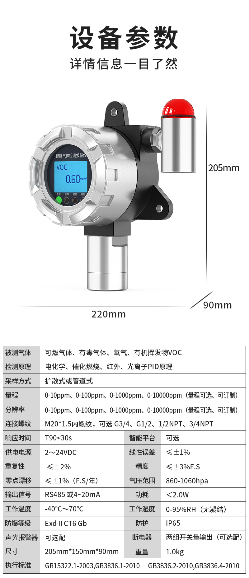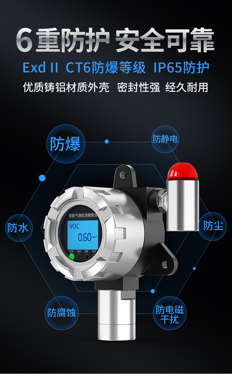 奕帆科技YF-8500系列防爆氣體檢測(cè)儀,可檢測(cè)上百種氣體(更換傳感器)。適用于石油化工等存在易燃易爆或有毒氣體的場(chǎng)所,可實(shí)時(shí)準(zhǔn)確檢測(cè)氣體濃度。采用進(jìn)口高精度傳感器和微控制器技術(shù),響應(yīng)速度快,測(cè)量精度高穩(wěn)定性和重復(fù)性好等優(yōu)點(diǎn)防爆接線方式活用于各種危險(xiǎn)場(chǎng)所,并兼容各種控制報(bào)警器,PLC,DCS等控制系統(tǒng),可以同時(shí)實(shí)現(xiàn)現(xiàn)場(chǎng)報(bào)警預(yù)警,4-20mA標(biāo)準(zhǔn)信號(hào)輸出,繼由器開(kāi)關(guān)量輸出,易示各項(xiàng)技術(shù)指標(biāo)和顯示濃度值,同時(shí)具有多種極的電路保護(hù)功能,有效防止各種人為因素,不可控因素導(dǎo)致的儀器損壞。