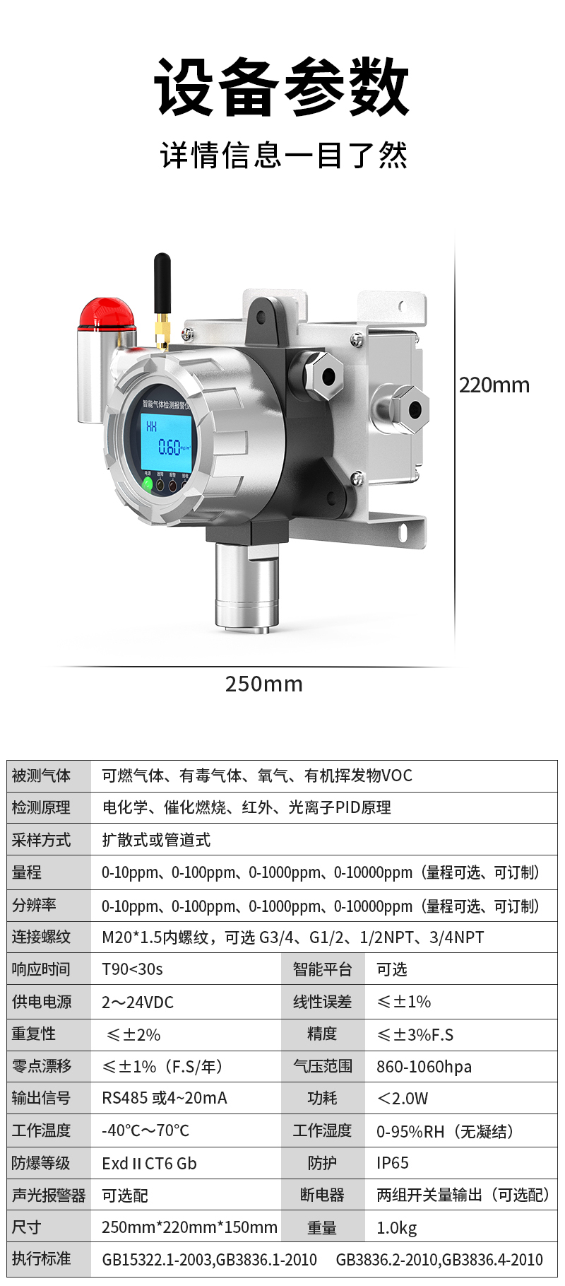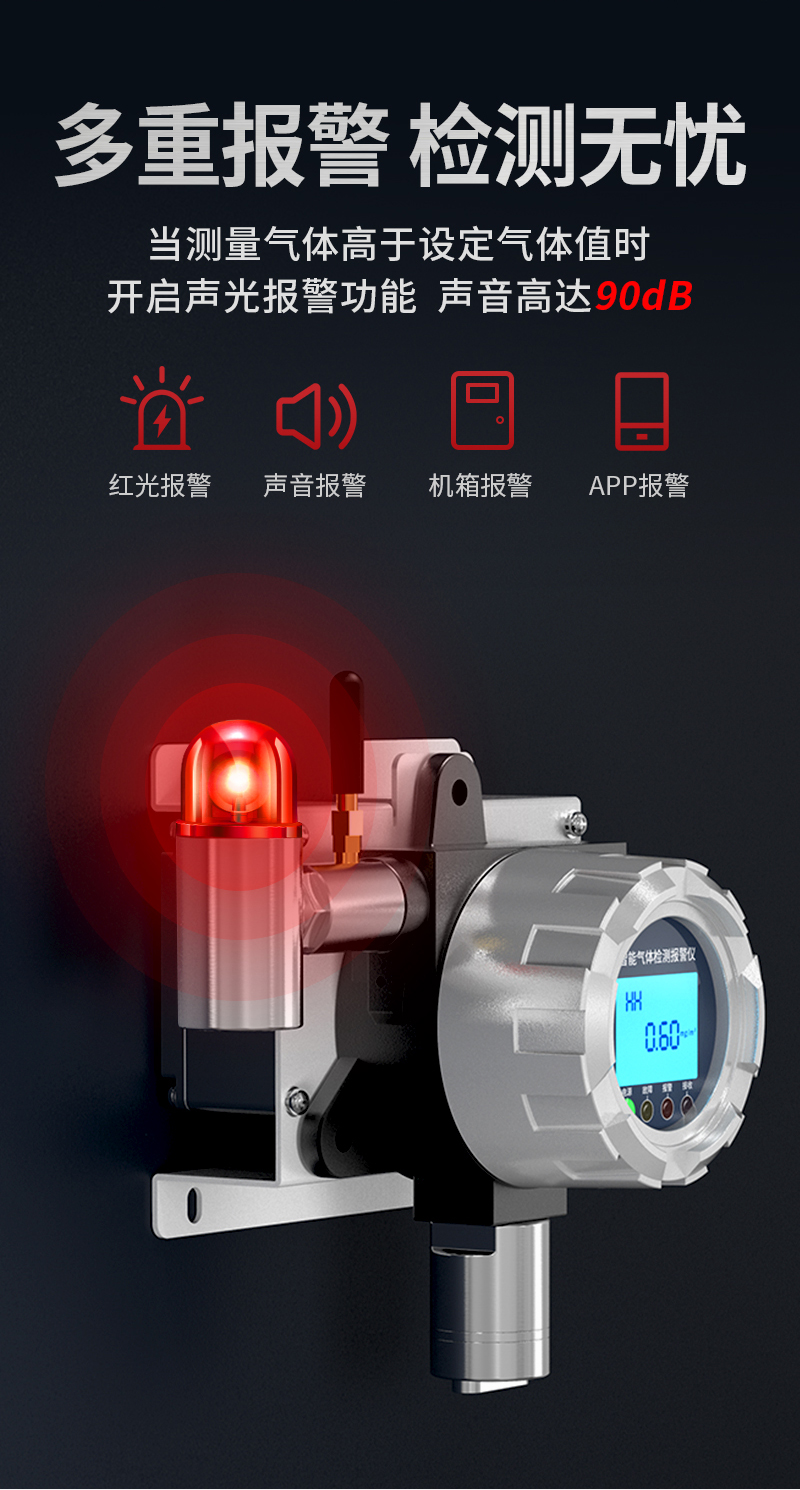 采用進口高精度傳感器和微控制器技術,響應速度快,測量精度高,穩(wěn)定性和重復性好等優(yōu)點。防爆接線方式活用于各種危險場所,并兼容各種控制報警器,PLC,DCS等控制系統(tǒng),可以同時實現(xiàn)現(xiàn)場報警預警,4-20mA標準信號出,繼由器開關量輸出,易示各項技術指標和顯示濃度值,同時具有多種極的電路保護功能,有效防止各種人為因素,不可控因素導致的儀器損壞。