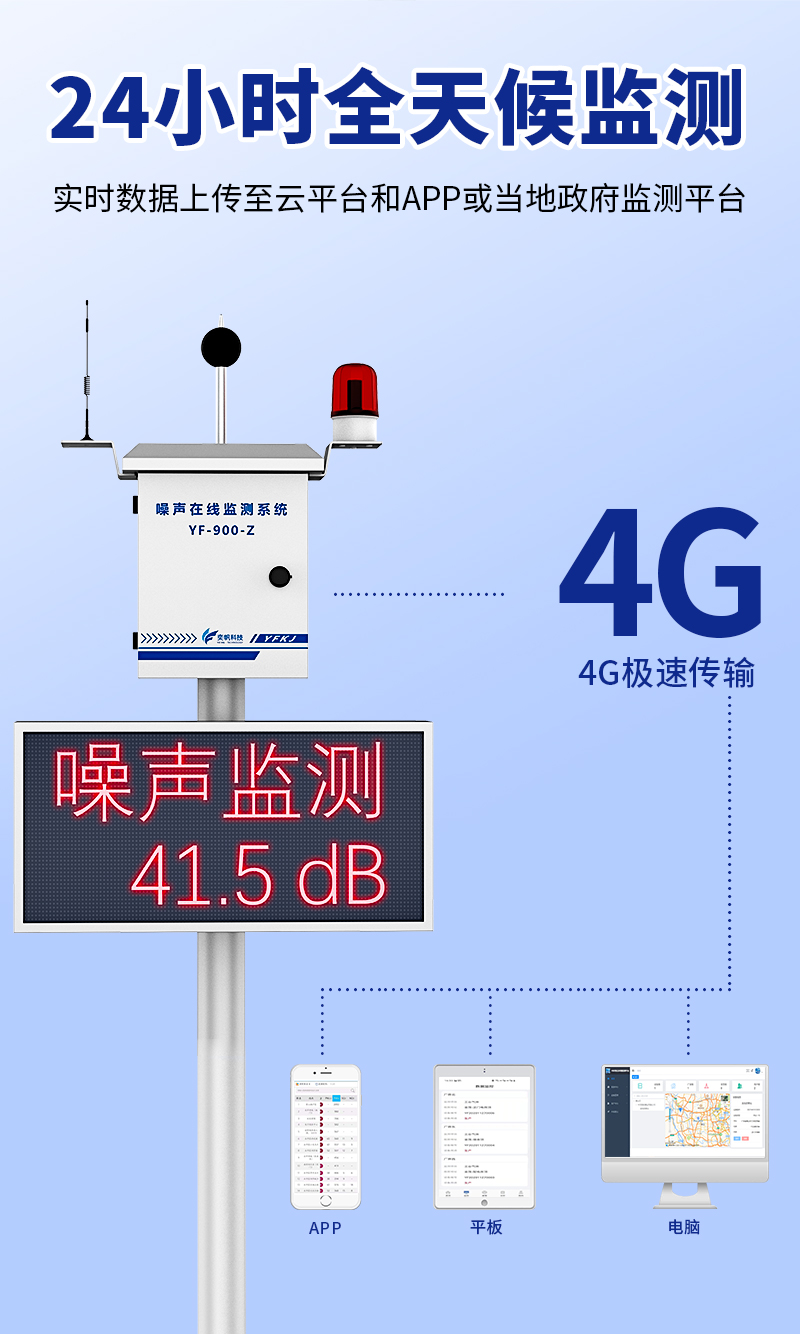 YF-900-Z奕帆科技噪聲在線監(jiān)測系統(tǒng),是通過物聯(lián)網(wǎng)技術(shù)與現(xiàn)場端儀器進(jìn)行聯(lián)互通,完成對環(huán)境噪聲數(shù)據(jù)實(shí)時采集,并對采集數(shù)據(jù)統(tǒng)計(jì)分析??赏ㄟ^LED顯示屏、手機(jī)APP/云平臺查看實(shí)時數(shù)據(jù)。噪聲計(jì)測量范圍大、功能強(qiáng)穩(wěn)定性好、可實(shí)現(xiàn)遠(yuǎn)程視頻監(jiān)控、遠(yuǎn)程廣播喊話等功能。